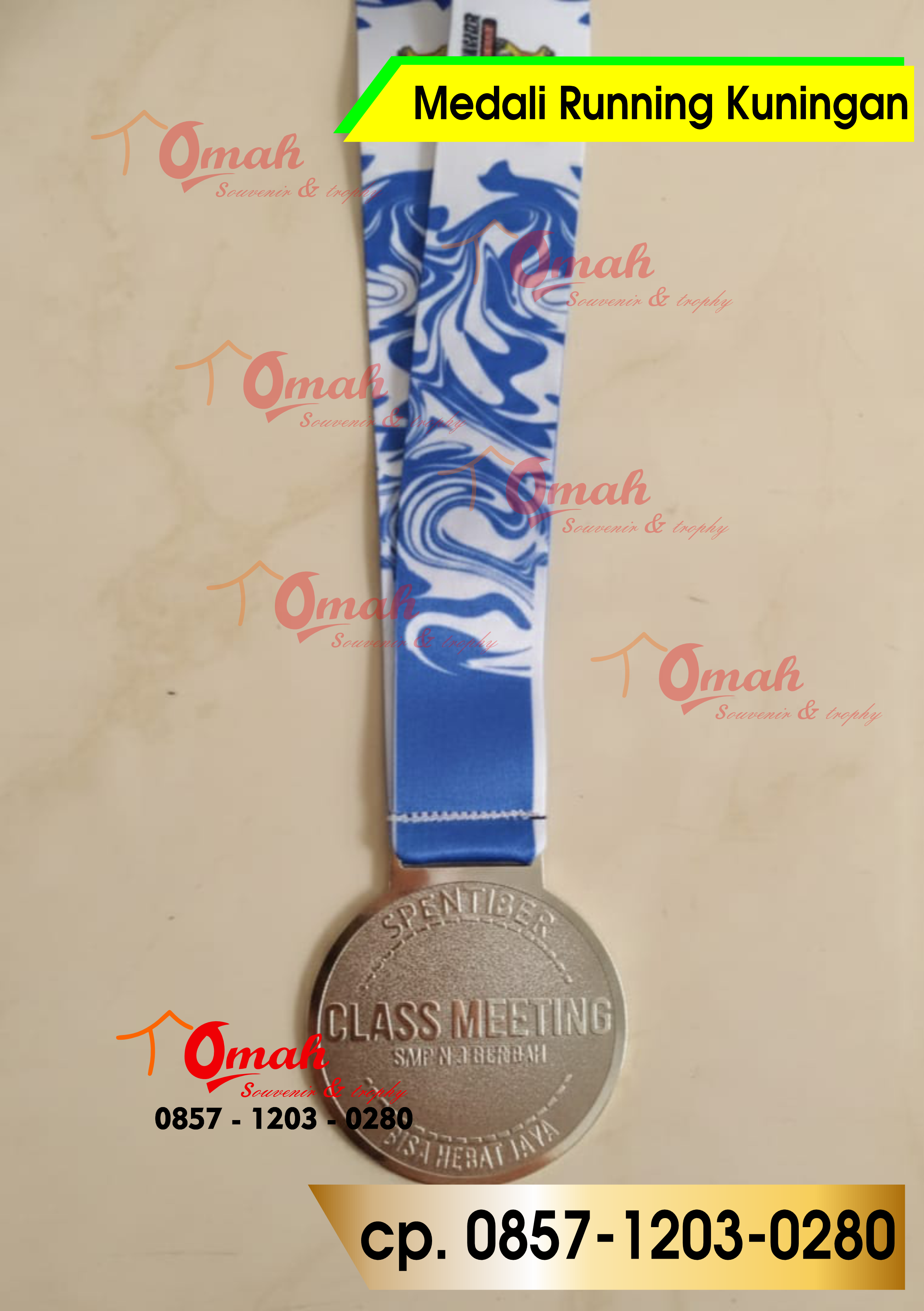 Medali Running dengan desain coustem bahan yang dui gunankan bahan kuningan, Tali printing dengan dimensi 7 cm ketebalan kuningan 1…