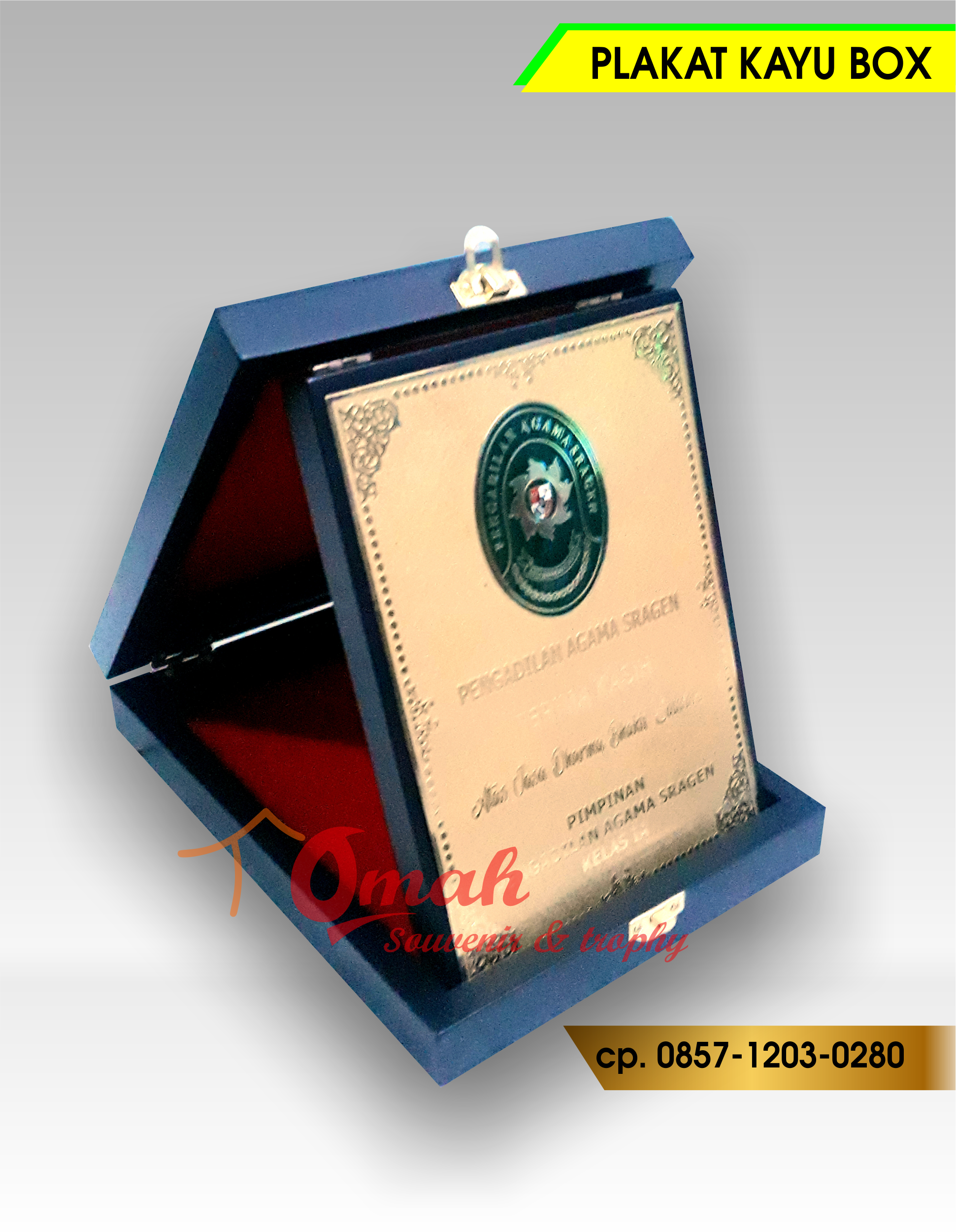 Plakat Box kayu adalah Plakat yang kerap kali di gunakan sebagai pemberian Kenang – kenangan terhadap instansi kepada instansi lainya…